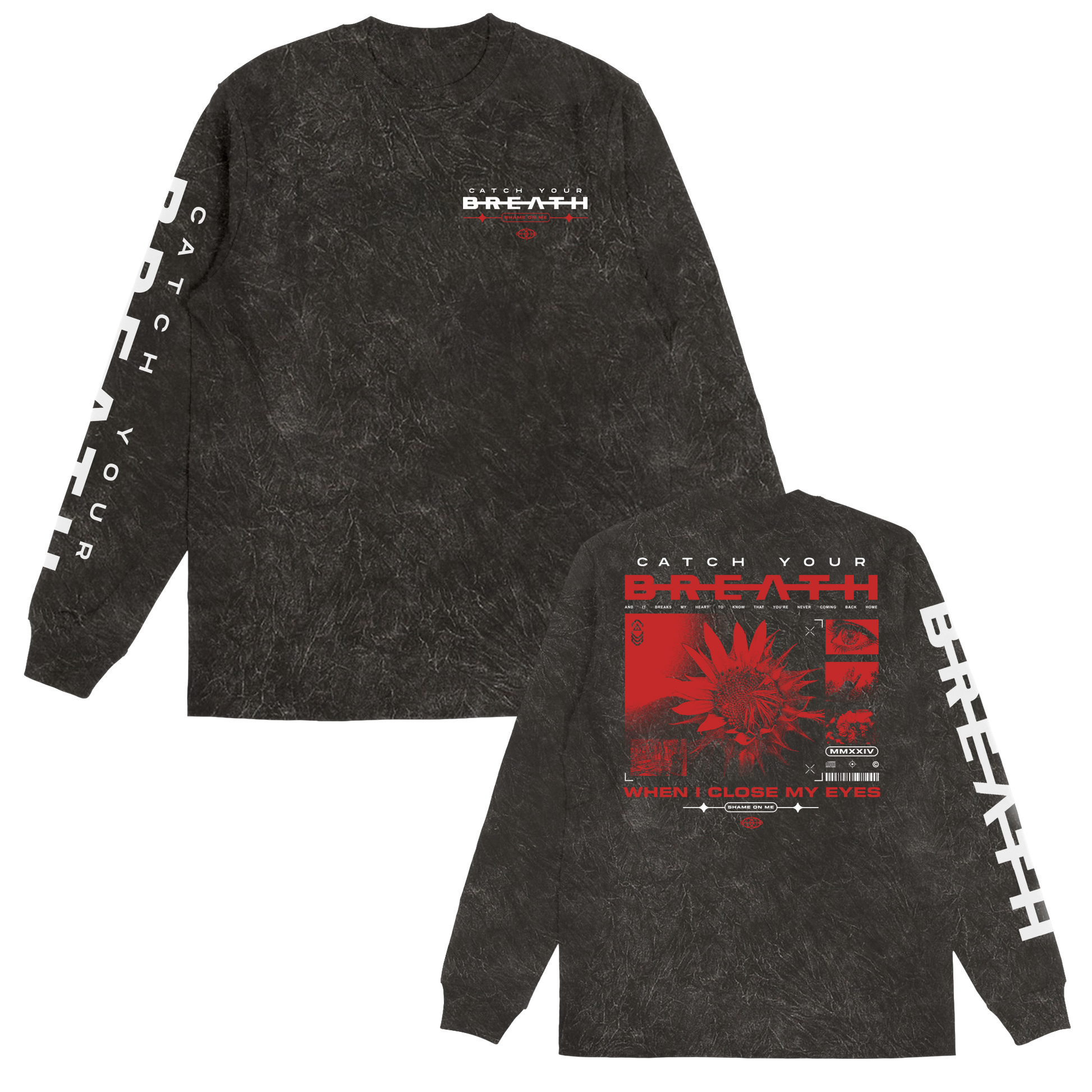 The Catch Your Breath When I Close My Eyes design, printed on a mineral black long sleeve.